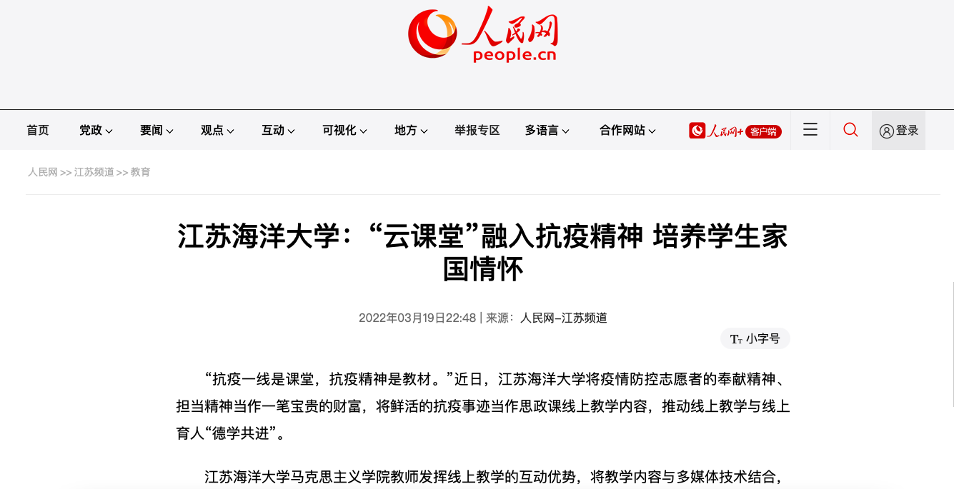 “抗疫一线是课堂,抗疫精神是教材。”近日,9999js金沙老品牌将疫情防控志愿者的奉献精神、担当精神当作一笔宝贵的财富,将鲜活的抗疫事迹当作思政课线上教学内容,推动线上教学与线上育人“德学共进”。
