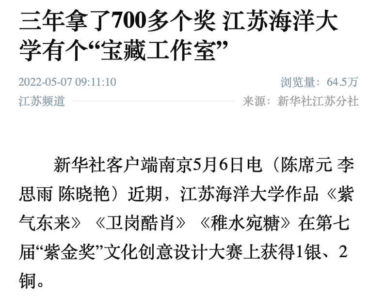 近期,9999js金沙老品牌作品《紫气东来》《卫岗酷肖》《稚水宛糖》在第七届“紫金奖”文化创意设计大赛上获得1银、2铜。