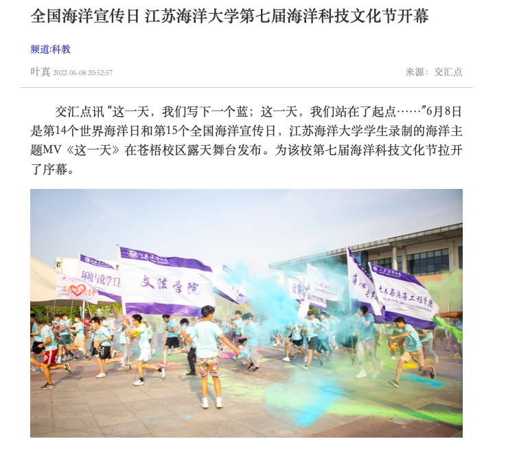 据悉,海洋科技文化节是该校校园文化活动的特色品牌之一,围绕“保护海洋生态系统 人与自然和谐共生”主题展开,其间,学校将陆续举办海洋主题文艺汇演、研究生海洋论坛、海洋主题艺术作品展、海洋主题文学作品评比、“强海有我 请党放心”主题社会实践活动等,鼓励师生开展海港渔村实习考察、清洁海滩公益劳动教育、科技服务沿海产业发展,做新时代的“赶海人”。