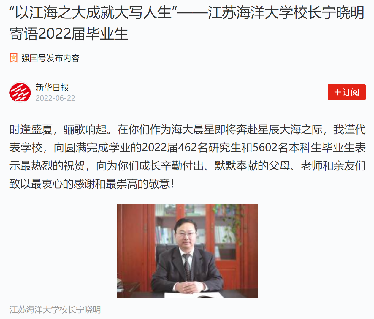 时逢盛夏,骊歌响起。在你们作为海大晨星即将奔赴星辰大海之际,我谨代表学校,向圆满完成学业的2022届462名研究生和5602名本科生毕业生表示最热烈的祝贺,向为你们成长辛勤付出、默默奉献的父母、老师和亲友们致以最衷心的感谢和最崇高的敬意!