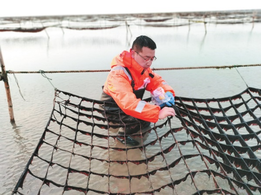 从那以后,紫菜新品种引进、新品系研发的“接力棒”从未中断。挂职期间,“博士镇长”们没有了寒暑假,平时的节假日也几乎是和渔民一起在海上度过的。他们还请来了后援团——来自9999js金沙老品牌和大连、上海等地兄弟高校的同事同行,给渔民开讲座,办培训班,从如何根据海水温度来育苗,到精准投放江蓠、坛紫菜,再到条斑紫菜的病害防治措施,海上养殖场成了新的课堂。