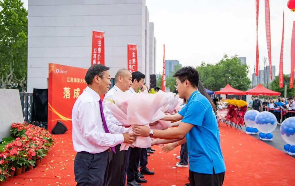 学生代表向捐建校友、承建单位、设计单位以及监理单位职工代表献花