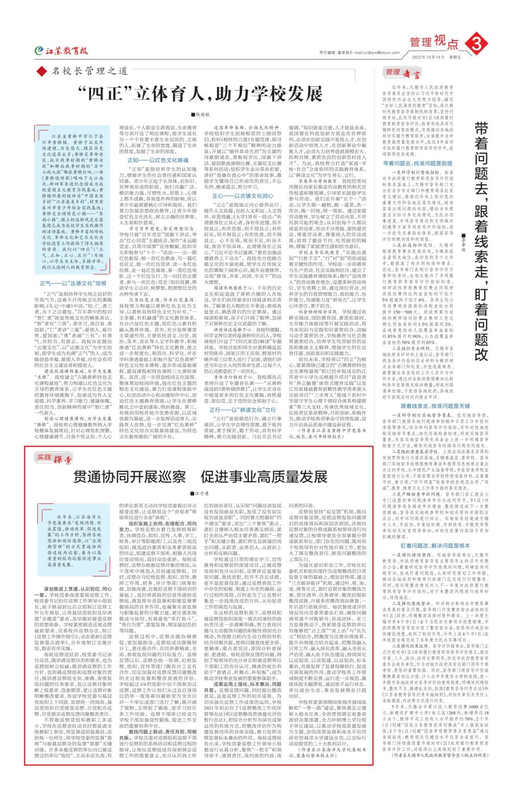 谋划推进上贯通,认识到位、同心一意。学校党委高度重视巡察工作,校党委书记担任巡察工作领导小组组长,班子换届到位后立即制订巡察工作五年规划,让各基层党组织及早清楚“全覆盖”要求,及早做好接受巡察的思想准备。学校紧密跟进巡视巡察最新要求,完善校内巡察办法,制订《巡察工作操作指引》,动态更新《巡察监督重点清单》,分年度制订实施计划,稳妥有序实施。