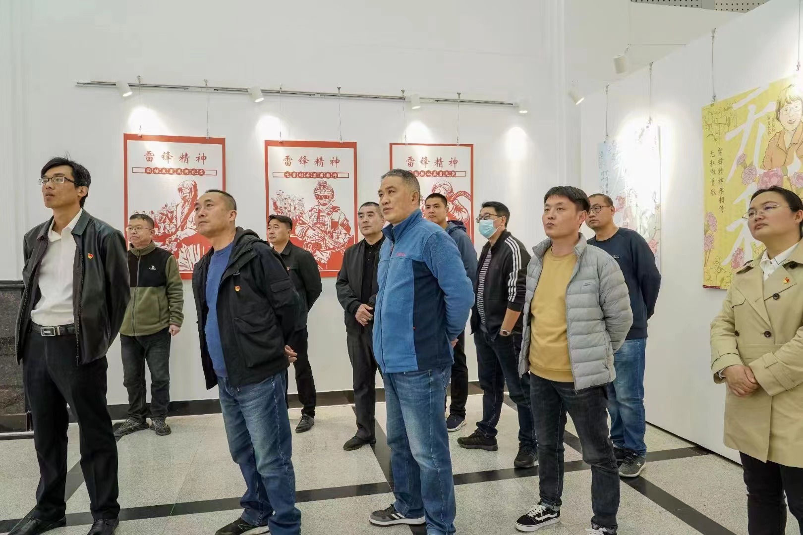 在“雷锋精神”展区,大家驻足在展板前,透过画笔追溯着雷锋事迹,感受着雷锋吃苦耐劳、无私奉献的大爱情怀、“螺丝钉精神”。在“我们的信仰”展区展示了当代雷锋精神的传承,诉说着钟南山、王继才、张桂梅、黄文秀这些坚守在平凡岗位敬业奉献的楷模故事。