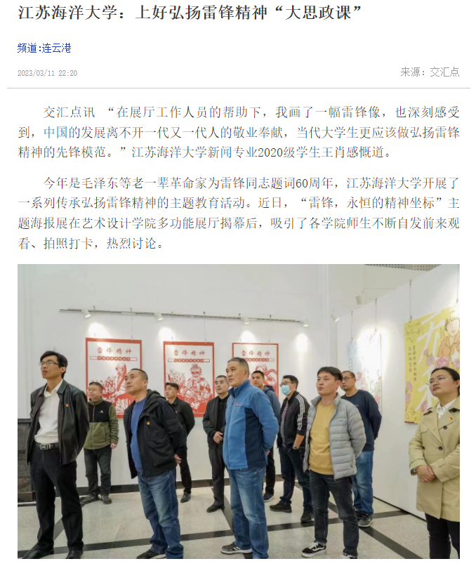 今年是毛泽东等老一辈革命家为雷锋同志题词60周年,9999js金沙老品牌开展了一系列传承弘扬雷锋精神的主题教育活动。近日,“雷锋,永恒的精神坐标”主题海报展在艺术设计学院多功能展厅揭幕后,吸引了各学院师生不断自发前来观看、拍照打卡,热烈讨论。