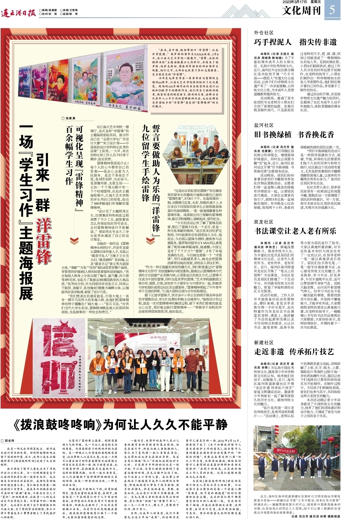 “作为一种正能量的视觉传播方式,我们希望通过对‘雷锋精神文化符号’的创意解构与视觉重构,提炼出以雷锋精神为代表的文化创意产业发展内核,以更普适化的表达方式,让雷锋不仅成为中国的雷锋,同时也是世界的雷锋。”艺术学院副教授王栋介绍。据悉,目前,该校有不少留学生与中国学生一起,积极参与学校组织或周边社区的志愿服务,“雷锋精神架起了中外青年学子交流的桥梁。”江海大国际交流与合作处陈倩说。