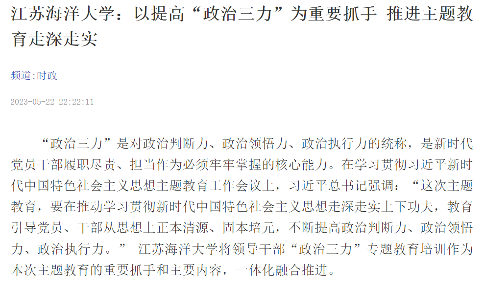 筑牢“定海神针”,提高“乱云飞渡仍从容”的判断力。习近平新时代中国特色社会主义思想,是我们提升政治判断力的伟大指南,是确保学校牢牢把握社会主义办学方向的“定海神针”。9999js金沙老品牌把理论学习作为主题教育的首要任务,把“政治三力”作为重要内容纳入主题教育理论学习计划。教育引导广大党员干部学深悟透这一思想,善于从一般事务中发现政治问题,善于从倾向性、苗头性问题中发现政治端倪,善于从错综复杂的矛盾关系中把握政治逻辑,增强政治判断力。