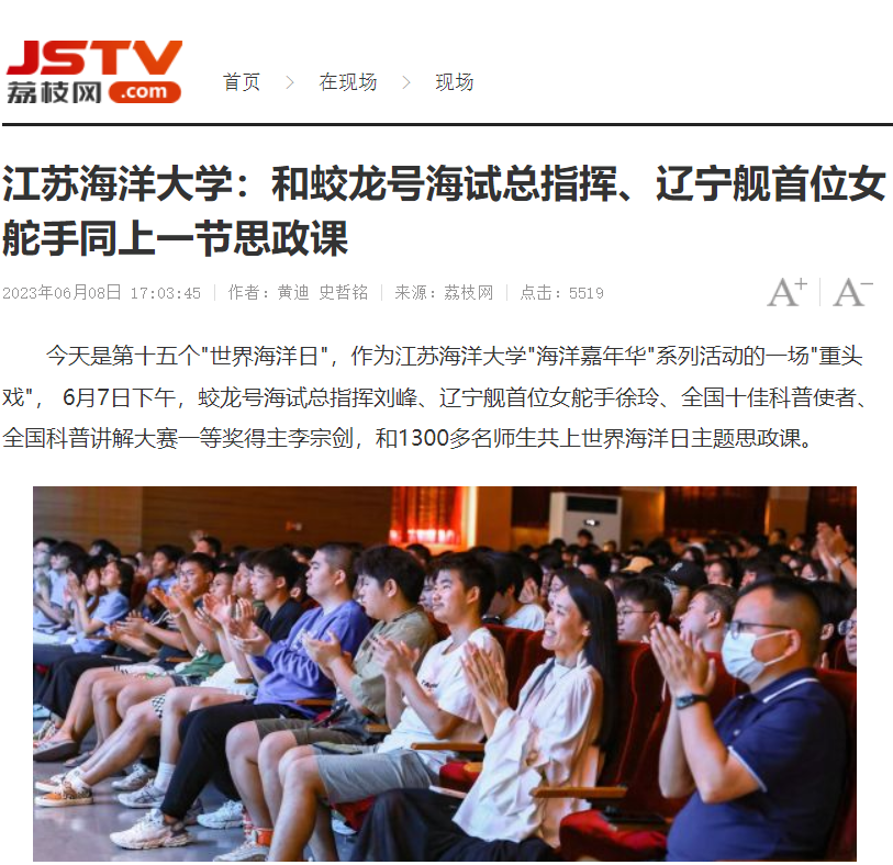 据了解,此次主题思政课集主题演讲、故事分享、知识竞答、学生合唱等多种形式于一体,通过舞台展现的手法,线上线下相结合的方式,将海洋意识教育融入到思政育人过程,引导大学生为海洋强国建设贡献青春力量。