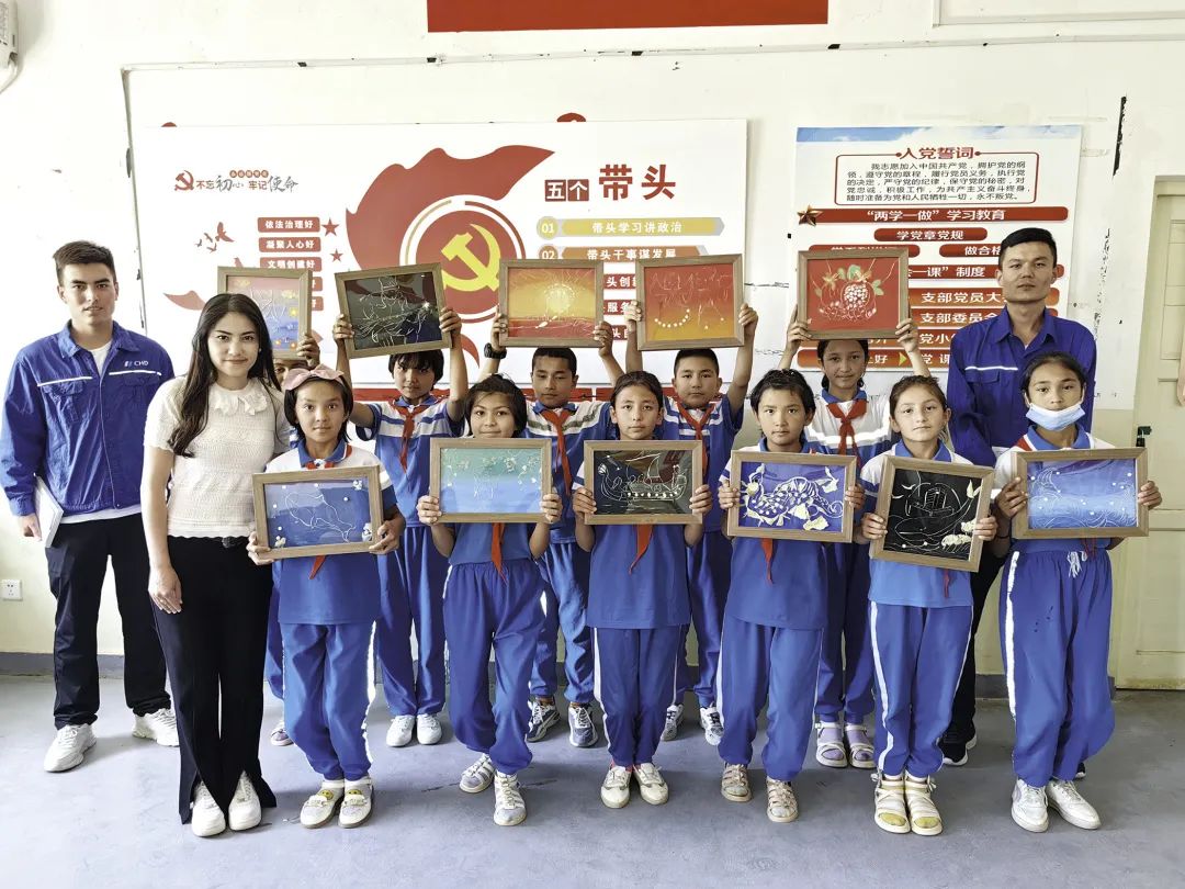 新疆喀什英吾斯坦乡中心小学的小朋友收到上海大朋友用鱼骨制成的海洋图画 上海海洋大学供图