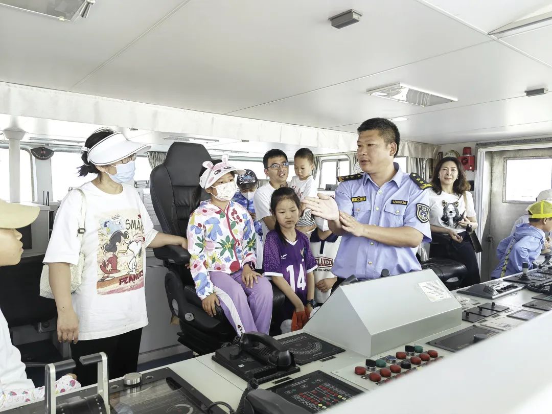 说到船舶,海洋日期间,海洋执法船堪称“移动的科普馆”。天津市海监总队组织“世界海洋日”海监船开放活动,以家庭为单位的参观者登上“海监3015”船,听船队员讲述他们如何维持用海秩序,以及保护海洋生态环境的重要意义。