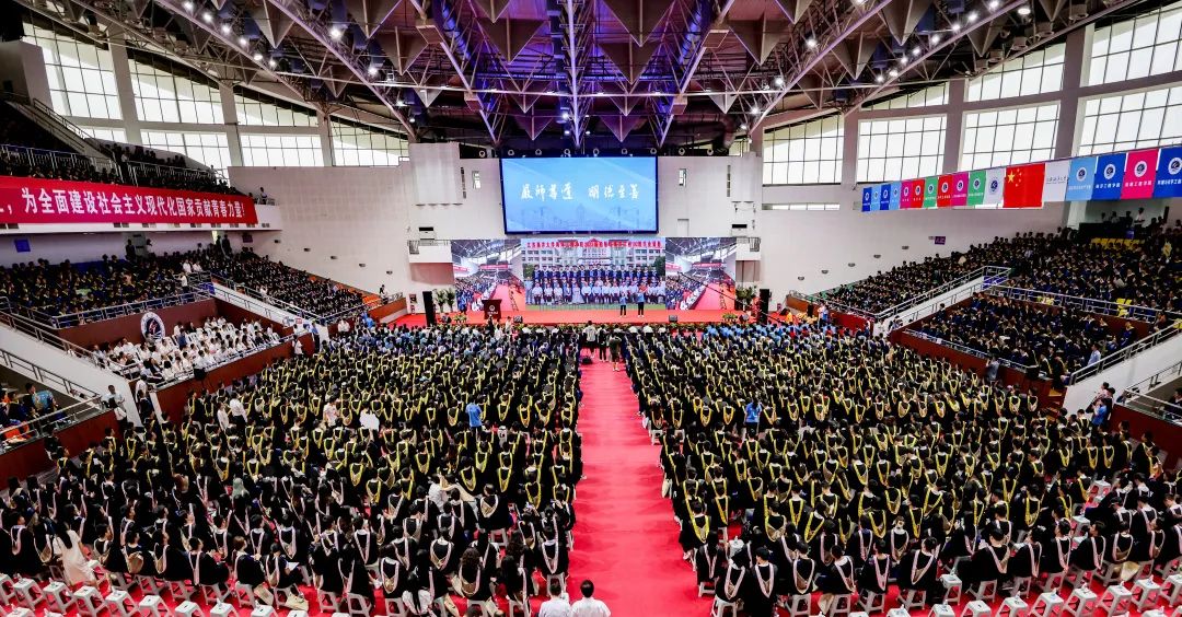 全体校领导,相关职能部门负责人,各学院党政主要负责人、副书记,毕业班班主任、毕业研究生导师、辅导员、校友代表共同到场,共同祝愿毕业生的大学生生涯划上圆满的句号,并为毕业生送上最美好的祝福。国歌奏响,典礼拉开帷幕。