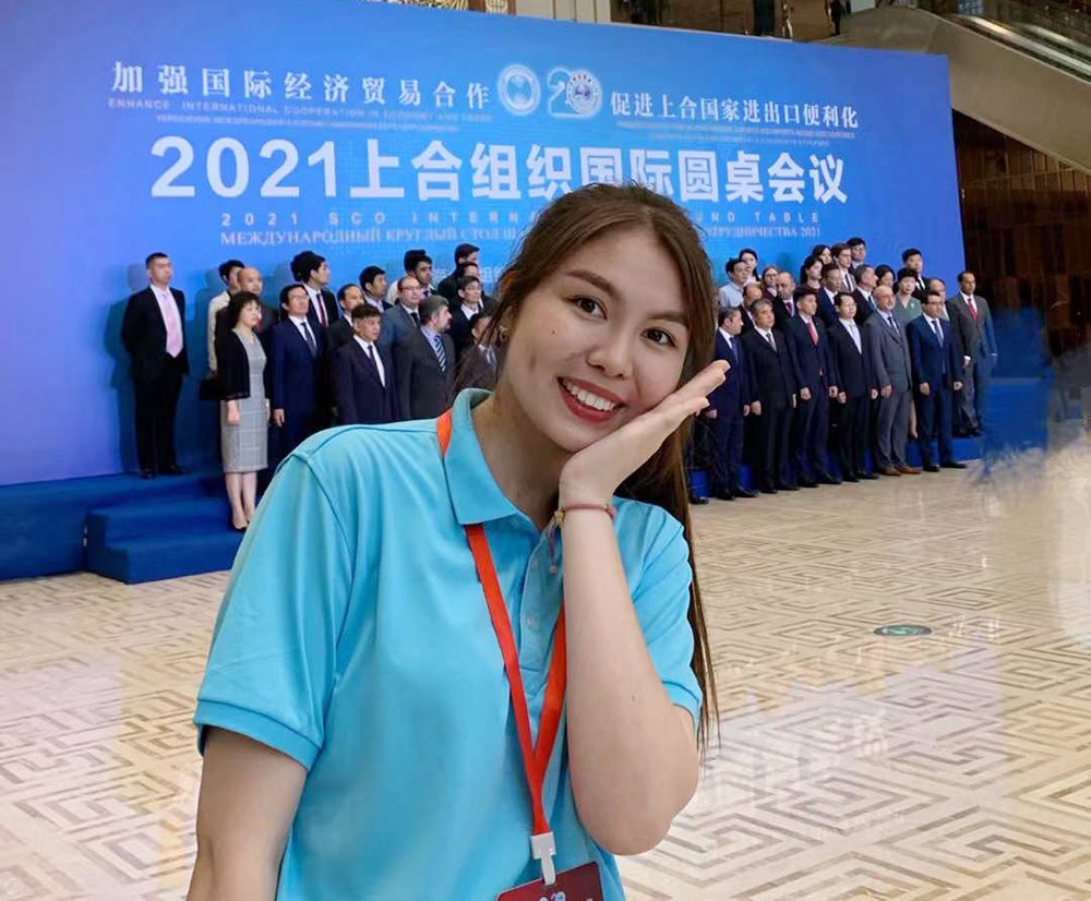 最令阿克莱自豪的,还是在本科毕业前夕,担任2021上合组织国际圆桌会议的志愿者。