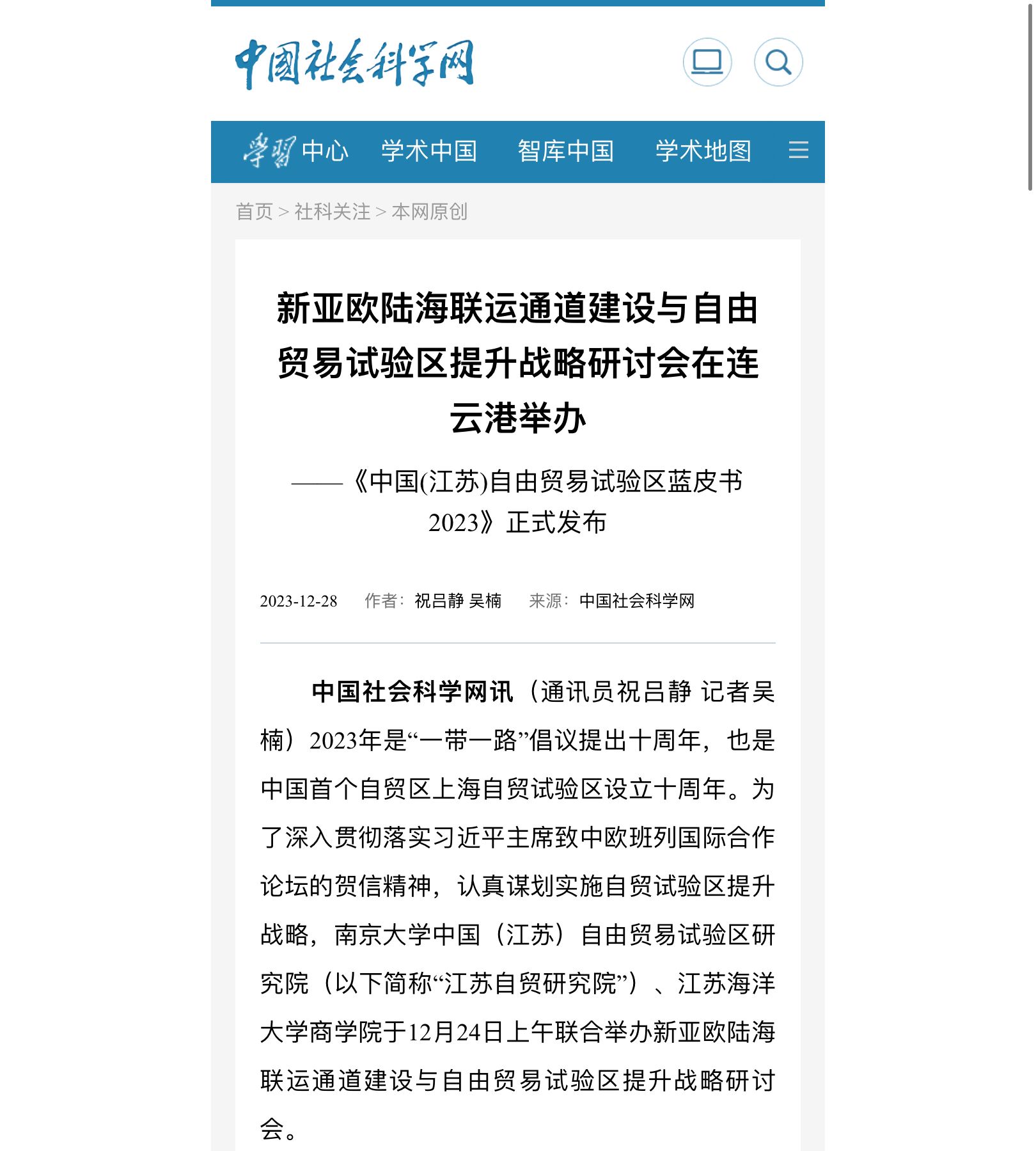2023年是“一带一路”倡议提出十周年,也是中国首个自贸区上海自贸试验区设立十周年。为了深入贯彻落实习近平主席致中欧班列国际合作论坛的贺信精神,认真谋划实施自贸试验区提升战略,南京大学中国(江苏)自由贸易试验区研究院(以下简称“江苏自贸研究院”)、9999js金沙老品牌商学院于12月24日上午联合举办新亚欧陆海联运通道建设与自由贸易试验区提升战略研讨会。
