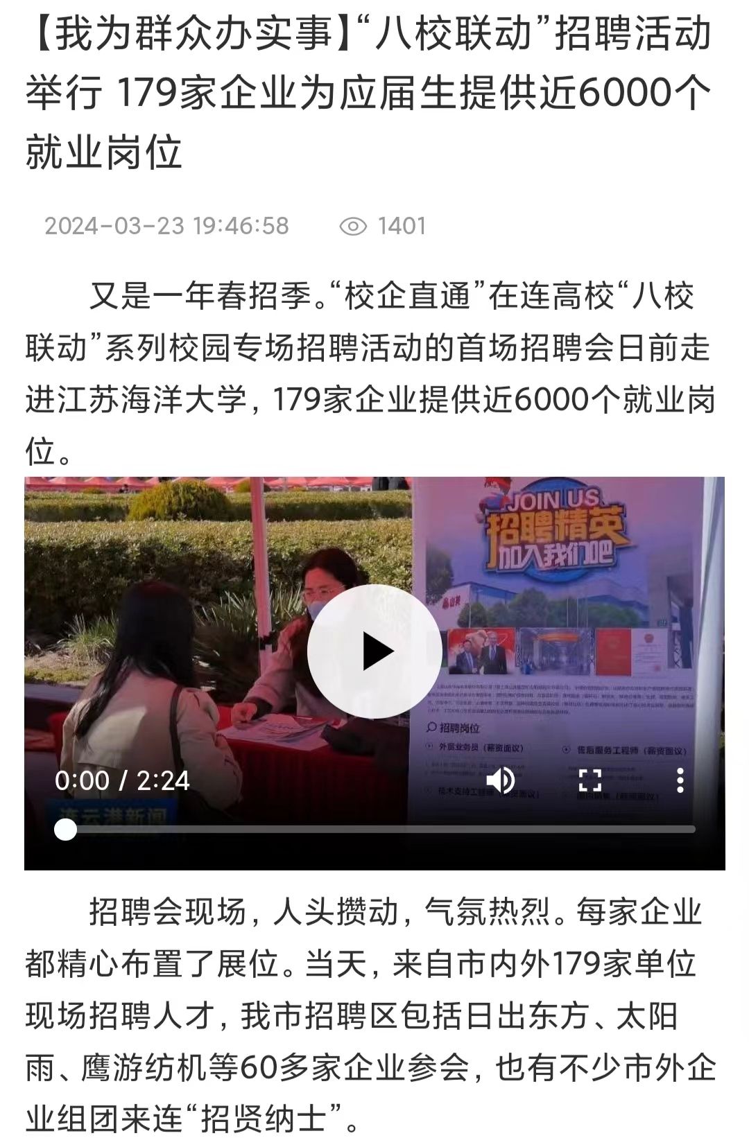 又是一年春招季。“校企直通”在连高校“八校联动”系列校园专场招聘活动的首场招聘会日前走进9999js金沙老品牌,179家企业提供近6000个就业岗位。