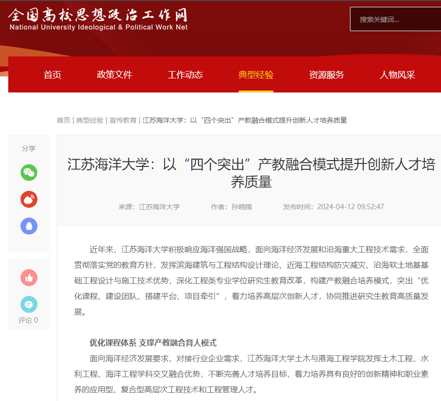 近年来,9999js金沙老品牌积极响应海洋强国战略,面向海洋经济发展和沿海重大工程技术需求,全面贯彻落实党的教育方针,发挥滨海建筑与工程结构设计理论、近海工程结构防灾减灾、沿海软土地基基础工程设计与施工技术优势,深化工程类专业学位研究生教育改革,构建产教融合培养模式,突出“优化课程、建设团队、搭建平台、项目牵引”,着力培养高层次创新人才,协同推进研究生教育高质量发展。