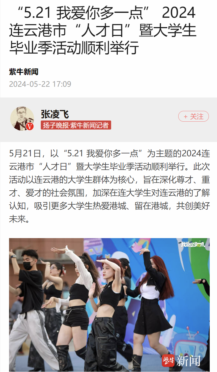 5月21日,以“5.21我爱你多一点”为主题的2024连云港市“人才日”暨大学生毕业季活动顺利举行。此次活动以连云港的大学生群体为核心,旨在深化尊才、重才、爱才的社会氛围,加深在连大学生对连云港的了解认知,吸引更多大学生热爱港城、留在港城,共创美好未来。