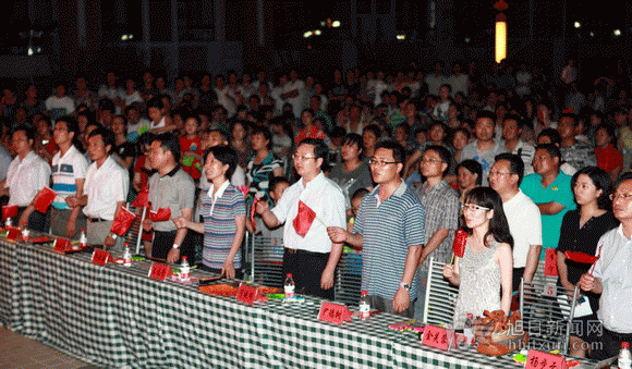 虽然当晚天气炎热,但是南园社区的居民群众对文艺演出表现出了极高的热情,小区广场内人声鼎沸、热闹非凡。随着卢士香老师和大学生艺术团民舞队共同表演的《载歌载舞》,演出正式开始;随后,大学生艺术团民乐队的一曲《梦里水乡》,委婉悠扬,为炎炎夏日注入了一丝清凉;彝族舞《嘻嘻戏》欢快明朗,三个小姑娘带着几分调皮的舞蹈,让宝应的群众赞不绝口;校园十佳歌手刘彬和周磊分别献唱了歌曲《苦咖啡》和《我爱你中国》,展示了校园歌手美妙的歌喉;而动感十足的劲舞《Stand Up》和《TNT组合》则引爆了现场的气氛,全场观众喝彩不断;大学生艺术团国标队带来的国标舞《风潮》更是让现场观众眼前一亮,赞叹淮工学子的多才多艺;歌舞《盛世和韵》掀起了演出的高潮,高昂的歌声、绚丽的舞蹈,让观众们如痴如醉。