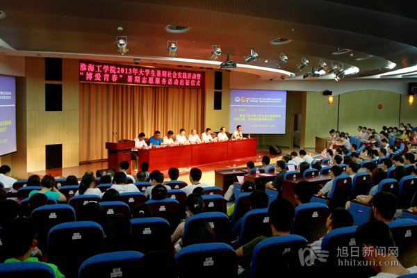 6月21日下午,我校2013年大学生暑期社会实践出征仪式在会议中心黄海厅隆重举行。校领导陈明辉、宁晓明出席仪式,连云港市红十字会副会长贺美来,校党委宣传部、学工部、教务处、校团委负责人,各学院党委副书记、团委书记,以及即将出征的学生代表200余人参加了出征仪式。
