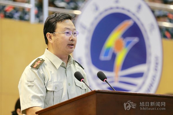 校党委副书记、副校长、新生军训团政委宁晓明作军训动员报告。宁晓明首先代表学校党政领导和全体师生向带训部队全体官兵表示热烈欢迎,并对关心和支持我校学生军训工作的连云港警备区、新浦区武装部的领导表示衷心感谢。