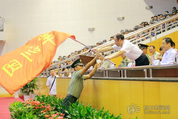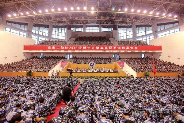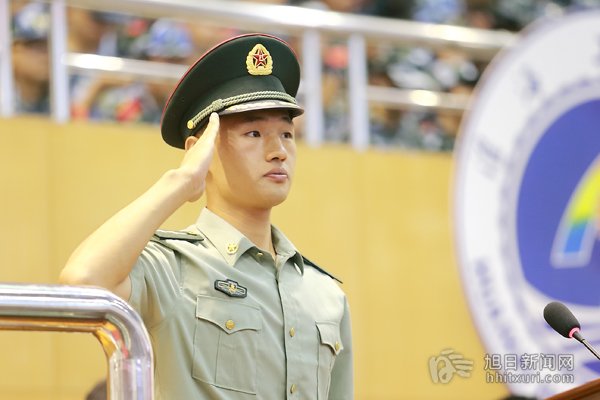 9月9日上午,2013级新同学军训动员大会在苍梧校区体育馆隆重举行,校领导陈明辉、史金飞、宁晓明、舒小平、杜军出席大会,连云港警备区参谋长周洪福大校、新浦区人武部部长周国强上校、73201部队政治处主任姚诚中校出席了大会。2013级新生及承训教官参加了大会。大会由新生军训团团长、副校长舒小平主持。