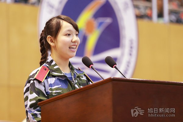 教官代表王浩丞、军训学员代表郭依琳先后在动员大会上发言。