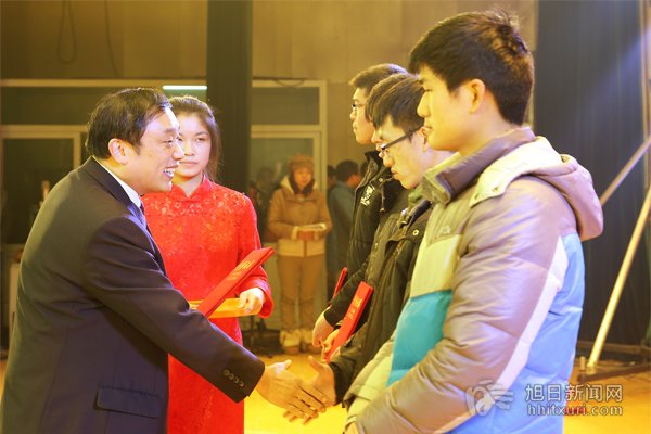 晚会开场前,校党委书记陈明辉同志致新年贺词。陈书记向全校老师和同学们送上美好的新年祝福,代表学校向一年来辛勤耕耘、敬业务实的老师们和勤奋努力、奋发向上的同学们致以诚挚感谢。同时,陈书记希望在新的一年里,全校师生凝心聚力,为建设海洋特色鲜明,区域优势显著的多科协调发展的应用型大学而努力奋斗。