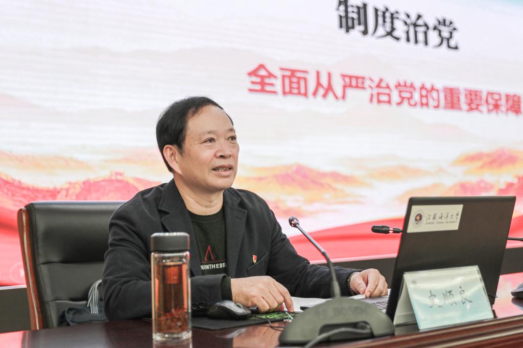 校党委副书记史顺良在培训会上作了题为《制度治党 全面从严治党的重要保障》的辅导报告,他从制度治党事关长远、标本兼治建章立制、与时俱进完善发展等三个方面对坚持依规治党与完善党内法规制度建设进行了系统梳理、分析和解读,阐释了完善全面从严治党制度永远在路上。他强调,制度治党是巩固全面从严治党成果,推进党的自我革命和党的建设科学化水平的重要载体,对扎实推动学校全面从严治党工作不断向纵深发展提出了更高的要求。校党委常委、党委组织部部长纪延光作了题为《贯彻落实新时代党的组织路线 做好党的基层工作》的辅导报告,他就党的组织路线的主要内容和重要意义、组织路线的具体要求及如何在基层党建工作中践行新时代党的组织路线进行了全面深入地讲解和阐述。党委组织部副部长韩振响就新版发展党员材料作了相关解读和说明。