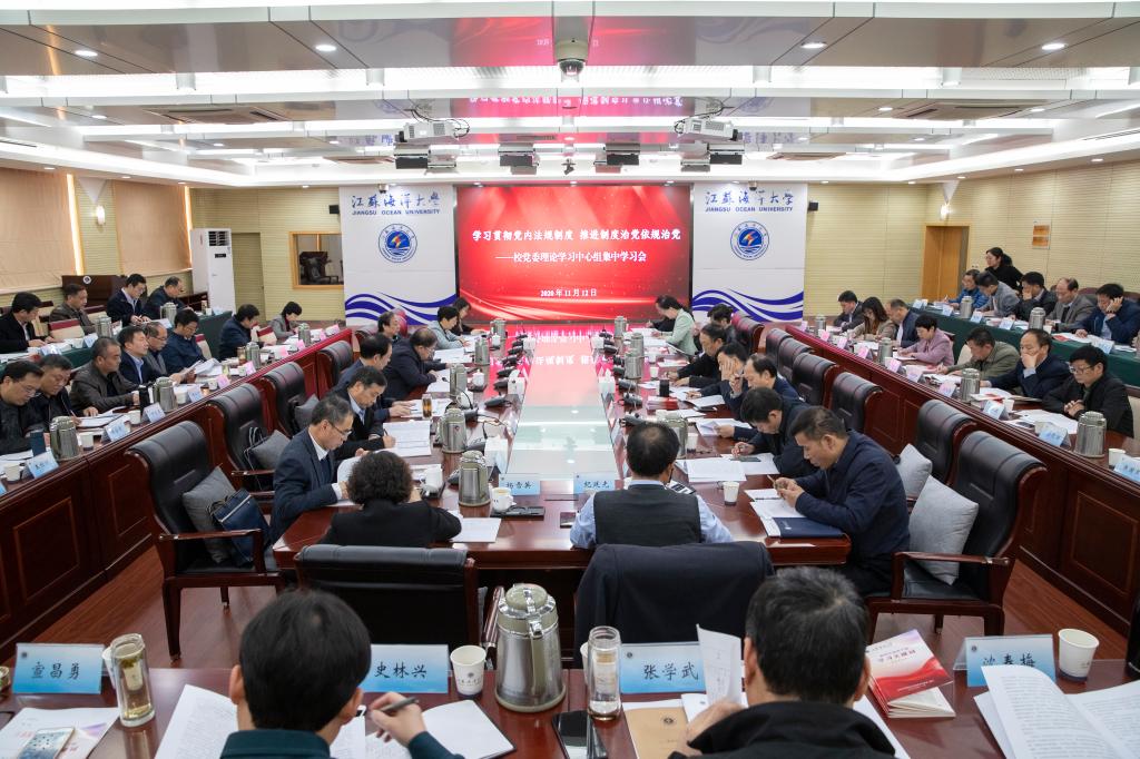 11月12日下午,我校党委理论学习中心组在会议中心东海厅举行扩大学习会,专题学习《中国共产党章程》等4部党内法规制度。校党委书记王自力作总结讲话。校党委副书记史顺良主持会议。在连校领导、“两委”委员、全体中层正职参加学习。