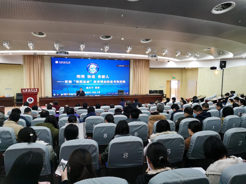 3月18日下午,南京航空航天大学副校长、国家“万人计划”教学名师、博士生导师施大宁教授受邀为我校教师作了题为“明理 悟道 育新人——贯彻“课程思政”教育理念的思考和实践”的线上报告。报告会在学术会议中心黄海厅举行,由副校长严云洋主持。