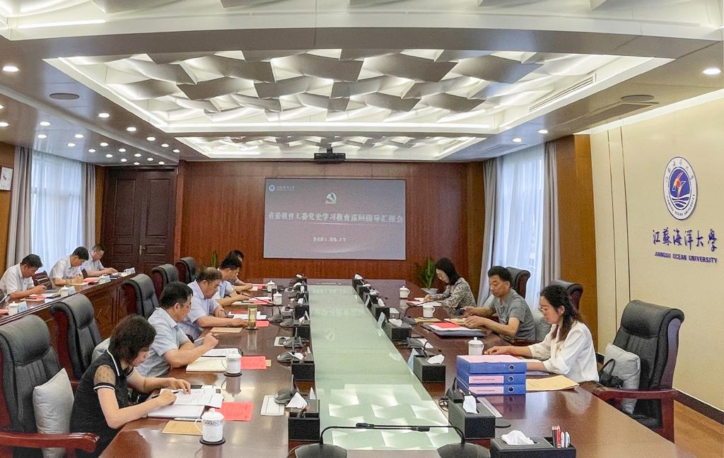 连云港市委教育工委、江苏财会职业学院相关负责人出席会议,学校党史学习教育领导小组内设机构负责人参加了会议。
