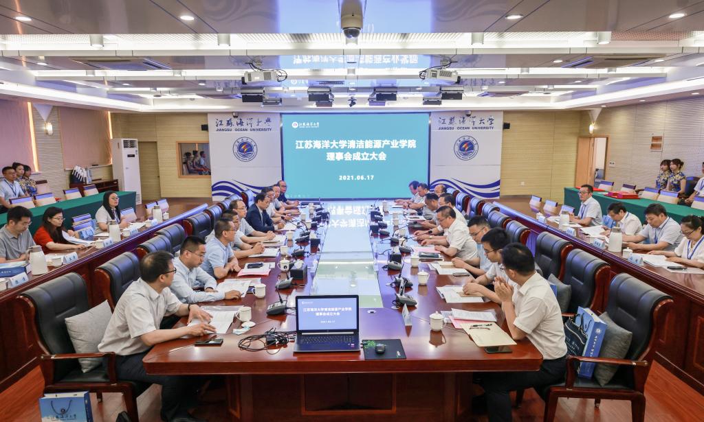 6月17日上午,我校清洁能源产业学院首届理事会成立大会在苍梧校区会议中心隆重举行。校长宁晓明、中国科学院工程热物理研究所党委副书记张家元、日出东方控股股份有限公司副总裁焦青太、中复连众复合材料集团有限公司党委副书记王彤兵、晶澳(扬州)太阳能科技有限公司副总经理黄健峰、连云港神州新能源有限公司总经理何涛、国网连云港供电公司总经理程真何等7家清洁能源产业学院共建单位代表及产业学院专家委员会主任上海交通大学孔向阳教授出席了会议,大会由副校长严云洋主持。