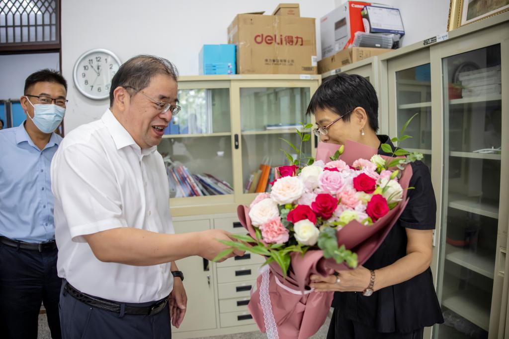 在第37个教师节来临之际,9月9日上午,校领导王自力、宁晓明、史顺良看望慰问了一线教师及退休教师代表,并向他们及全校教师致以节日的问候和诚挚的祝福。