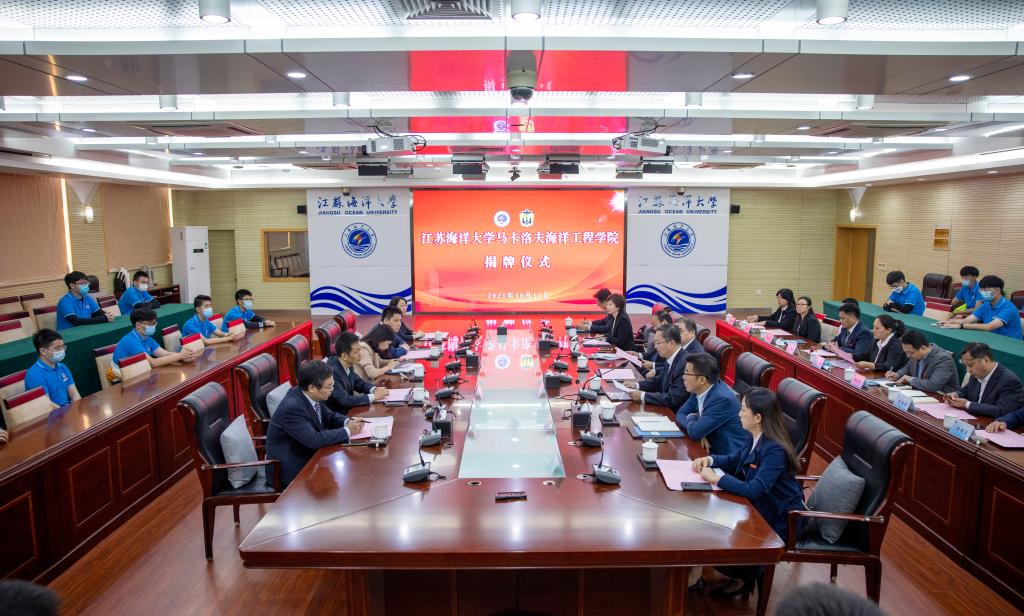 10月11日上午,我校隆重举行首个获批的中外合作办学机构——马卡洛夫海洋工程学院揭牌仪式。校党委书记王自力、校长宁晓明、江苏省教育厅对外合作与交流处副处长施蕴玉、江苏省发展和改革委员会一带一路处副处长孙巍、连云港市发展和改革委员会副主任李非非、连云港市教育局副局长徐向阳、连云港市人民政府外事办公室副主任张义刚出席揭牌仪式。副校长、马卡洛夫海洋工程学院院长舒小平主持揭牌仪式。