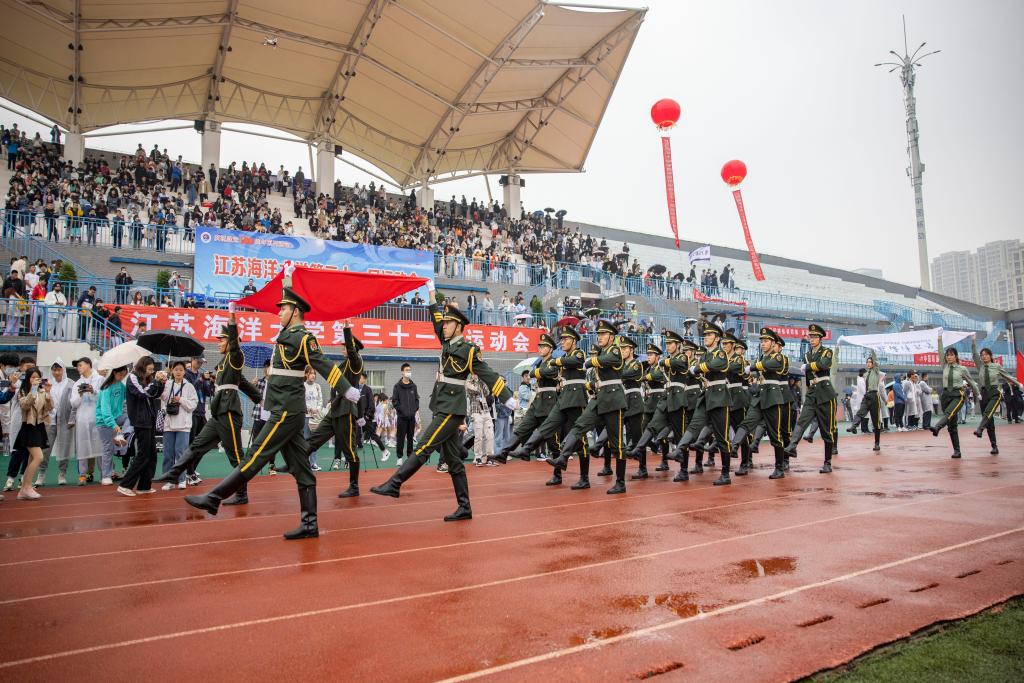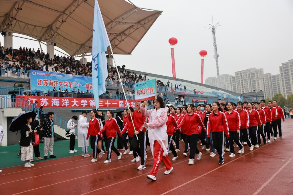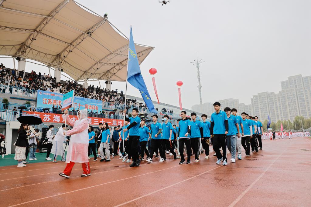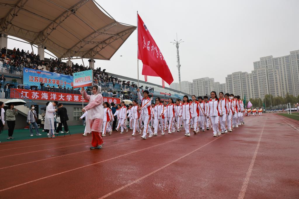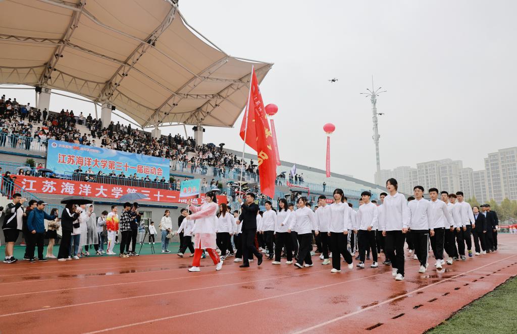 国旗方阵身着军装,严肃整齐,昂首阔步地走向主席台,彩旗方队也为空旷的操场增添了一抹亮色。24支代表队,师生运动员们依次走入赛场,他们昂首挺胸,迈着整齐划一的步子,铿锵有力的口号展现了我校师生积极向上的精神面貌。