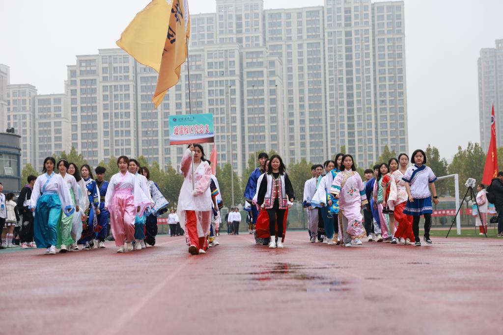 开幕式后,广播体操比赛、田径比赛与趣味项目比赛相继举行。运动场上彩旗飘扬,氛围热烈,尽管秋雨绵绵,但却淋不灭运动员昂扬斗志,浇不灭观众们加油助威的热情。