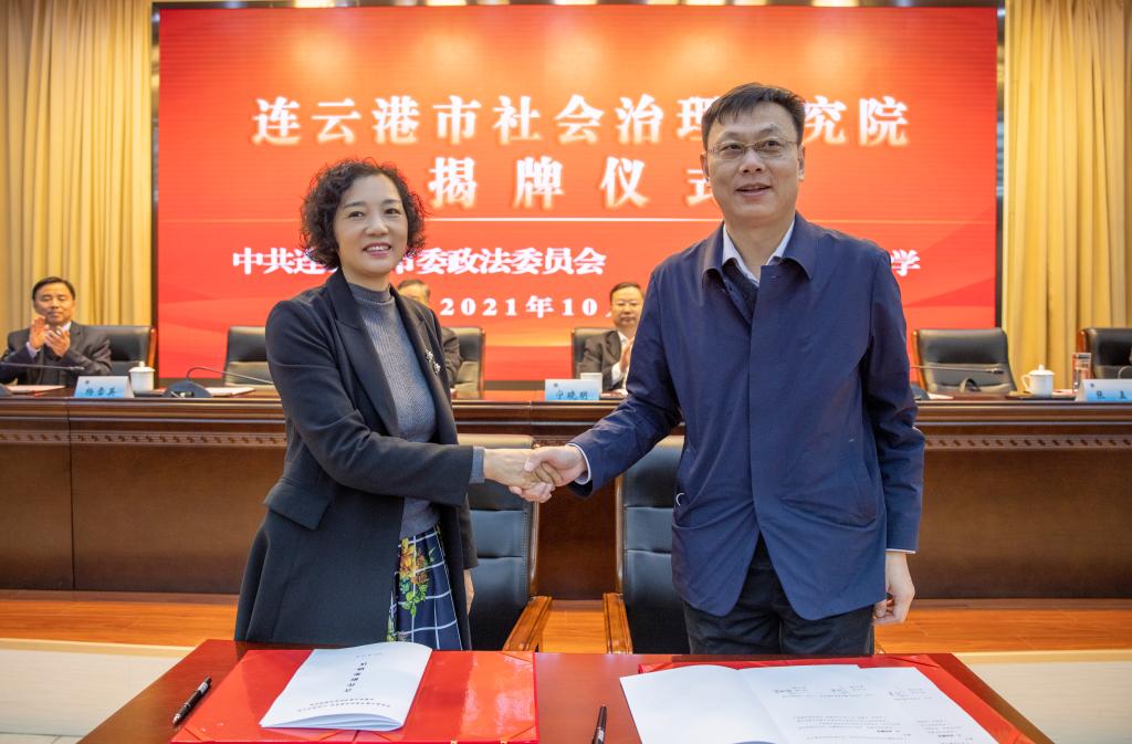 连云港市社会治理研究院依托我校文法学院,由中共连云港市委政法委员会和我校合作建设。研究院实行理事会领导下的院长负责制,校党委常委、宣传部部长杨雪英教授任理事长。研究院主要职能是发挥校地双方优势,加强市域社会治理理论研究和实践探索,破解地方社会治理难题。