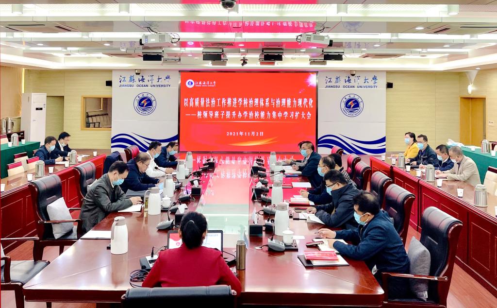 11月2日下午,我校在会议中心东海厅举行校领导班子提升办学治校能力集中学习扩大会,围绕新时期加强高校法治工作进行专题学习。校党委书记王自力主持会议并作总结讲话。校领导班子全体成员、机关职能部门负责人参加学习。