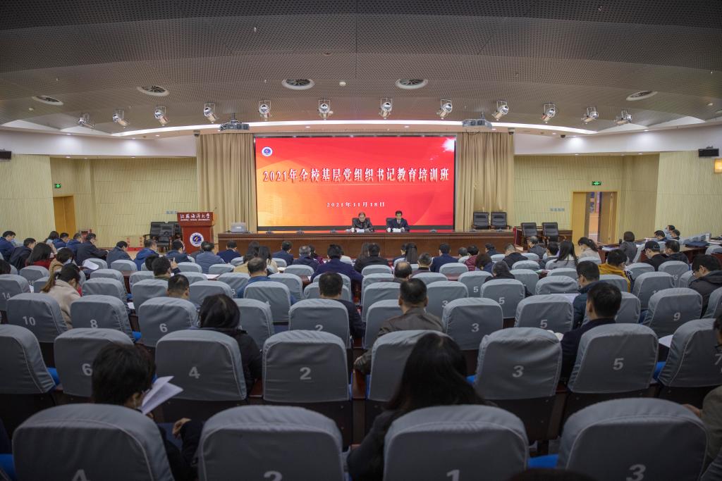 为深入学习贯彻习近平总书记“七一”重要讲话精神和党的十九届六中全会精神以及第二十七次全国全省高校党的建设工作会议精神,11月18日至19日,我校在会议中心黄海厅举行全校基层党组织书记专题培训班。校党委书记王自力出席开班式并讲话。各基层党委(总支、直属支部)书记、副书记,党政办(办公室)主任和全体党支部书记200余人参加了培训。