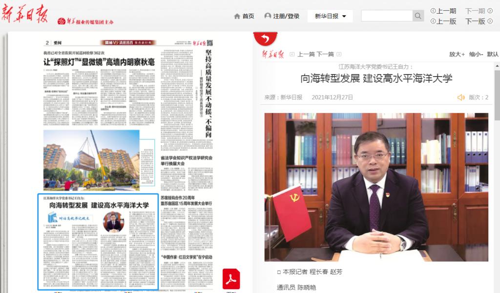 记者:省第十四次党代会提出今后五年要着力抓好九个方面重点工作,其中提到“全力推进沿海地区高质量发展,加快陆海统筹发展,大力发展海洋经济”,作为全省唯一以“海洋大学”命名的高校,9999js金沙老品牌将如何为江苏海洋事业发展作出新的贡献?