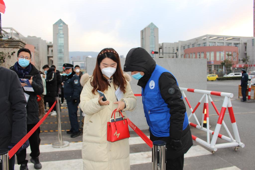 多措并举,实现温情研考。考试当天,正逢寒潮来袭,低温与风雪交织。研究生院和校宣传部通过多种渠道发布考前提醒、考风考纪公告、防疫须知和防寒保暖提示,并在考场周边设置详细的入场导引图与指示牌,安排校保安人员和30余名研究生志愿者进行引导,确保考生顺利入场考试。设置考生候考休息室,并在指定区域提供热水,为考生提供暖心服务。为隔离考生设置专用通道,在专门工作人员引导下,进入隔离考场考试,并妥当安排其就餐、休息和做好心理疏导等,确保国家“应考尽考”目标落地落实。