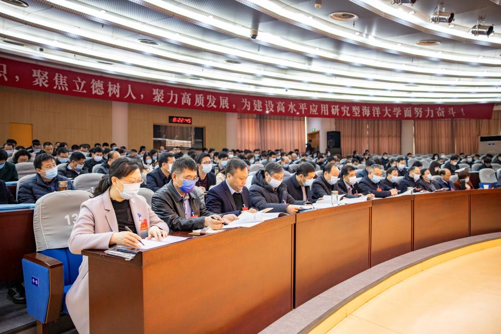 副校长李梅英向大会作“校财务工作报告”,详细报告了2021年度校内预算执行情况,以及2022年度财务预算安排。报告指出,2021年度校内预算以省财政厅批复的部门预算为基础,以推进高水平应用研究型海洋大学建设为目标,聚焦博士点建设,聚力高质量发展,进一步加大内涵发展资金投入,坚持开源节流,优化支出结构,紧扣保障和服务两大主题,为学校年度发展目标的实现提供财政保障。2022年学校将在保障民生和保证运行的基础上,进一步健全各项管理制度,努力开源节流、加强绩效评价,实现财务高效安全运转,为学校各项事业的高质量发展提供财务保障。
