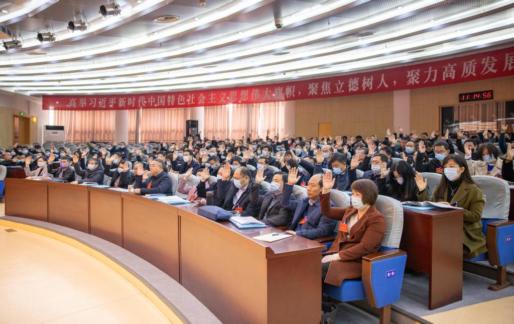 校党委副书记、校长宁晓明代表学校向大会作题为“坚持稳中求进开创学校事业高质量发展新局面”的工作报告。报告从十个方面回顾了2021年学校事业发展取得的成绩,客观准确地分析了学校面临的形势、机遇和制约学校发展的关键问题,科学谋划了2022年工作总体思路和主要任务。