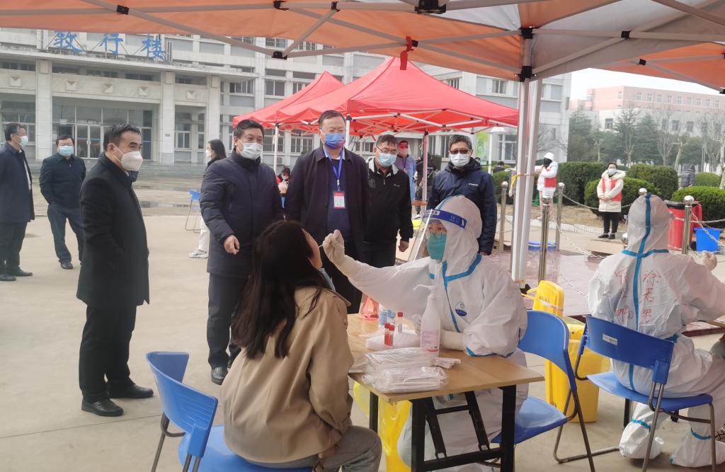 3月12日、13日,校领导王自力、宁晓明、史顺良、舒小平、李梅英、陈先宏、严云洋先后到苍梧校区、通灌校区、宋跳校区,在核酸检测现场、学生宿舍、门卫、食堂、卫生科等防疫工作关键场所,以及家属区施工现场检查指导防疫工作。