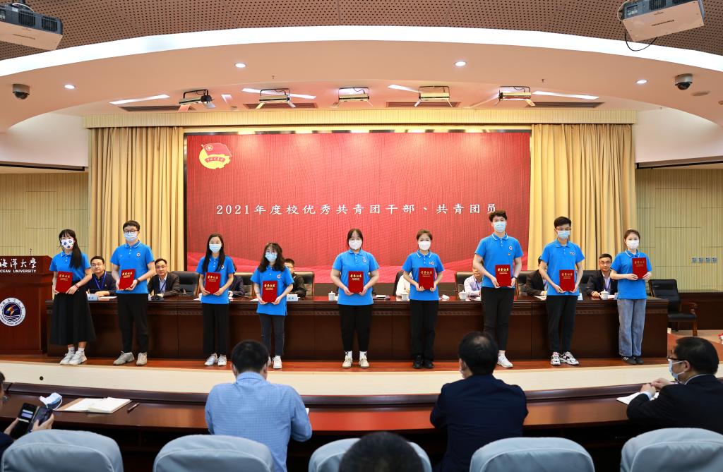 校党委书记王自力代表学校向广大青年送上节日的祝福。他回顾了过去一年我校共青团工作取得的成绩,并结合习近平总书记在考察中国人民大学时的重要讲话精神,对各级团组织和广大青年提出了四点要求:一是要做五四精神的传承者,在火热的社会实践中砥砺成长。青年大学生要牢固树立社会主义核心价值观,做到“勤学、修德、明辨、笃实”和“爱国、励志、求真、力行”;二是要有家国情怀,将“小我”融入国家和民族之“大我”。青年大学生要胸怀大局、心有大我,立鸿鹄之志,担时代之责,把个人的“小我”融入到实现“国家富强,民族复兴,人民幸福”的“大我”之中。将“小我”的奋斗,汇入时代的大潮之中;三是要紧跟时代步伐,做脚踏实地的奋斗者。青年大学生要谨记“海洋强国”的蓝色信念,激发矢志蔚蓝、报效祖国的澎湃力量,苦练本领、增长才干,以不竭“青春之力”增强“青春有我”的骨气,在百舸争流中劈波斩浪,在千帆竞发中勇立潮头;四是要聚焦主责主业,认真落实新时代党的青年工作方针。共青团干部要进一步提升工作的方位感、方向感,抓住建团百年有利契机,着力引导团员青年全面认知党领导青年运动的光辉历程,清醒认识自身肩负的历史使命,不断增强新时代有为青年的思想自觉和行动自觉。
