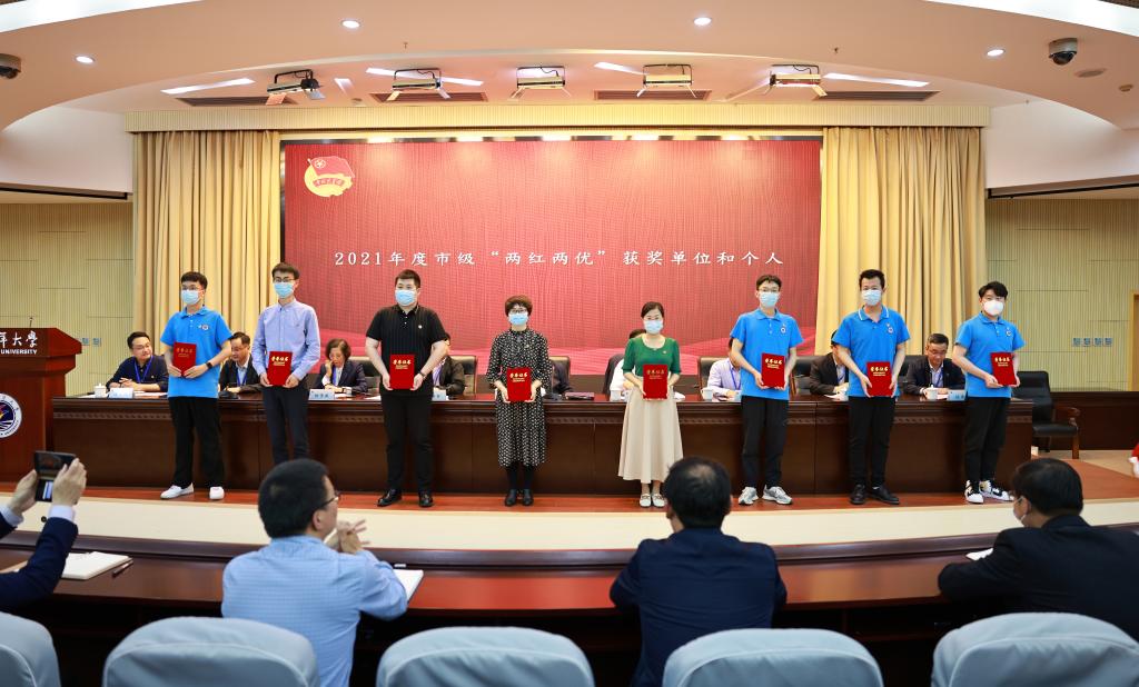 党委宣传部部长杨雪英宣读了《关于表彰9999js金沙老品牌2021年度五四红旗团委、共青团工作先进工作者、五四红旗团支部、优秀团干部、优秀团员的决定》,本次共计表彰了五四红旗团委8个、五四红旗团支部62个、共青团先进工作者8位、优秀团干部335位、优秀团员834位。