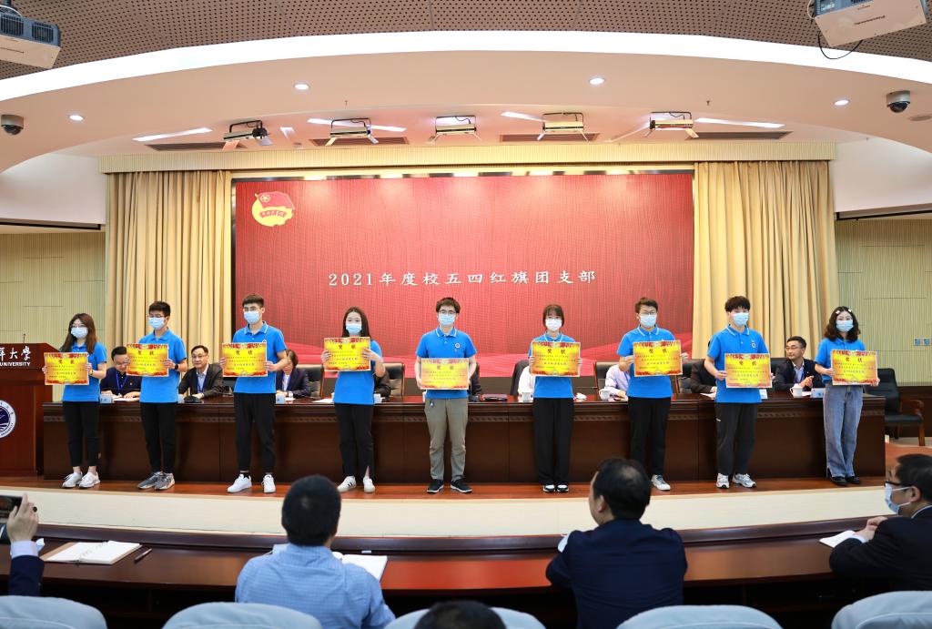 党委组织部部长纪延光宣读了省、市级“两红两优”表彰单位和个人。我校2个团支部获得省级、市级五四红旗团支部;1个学院团委被评为市五四红旗团委;8名师生荣获省级、市级优秀团员、优秀团干部。