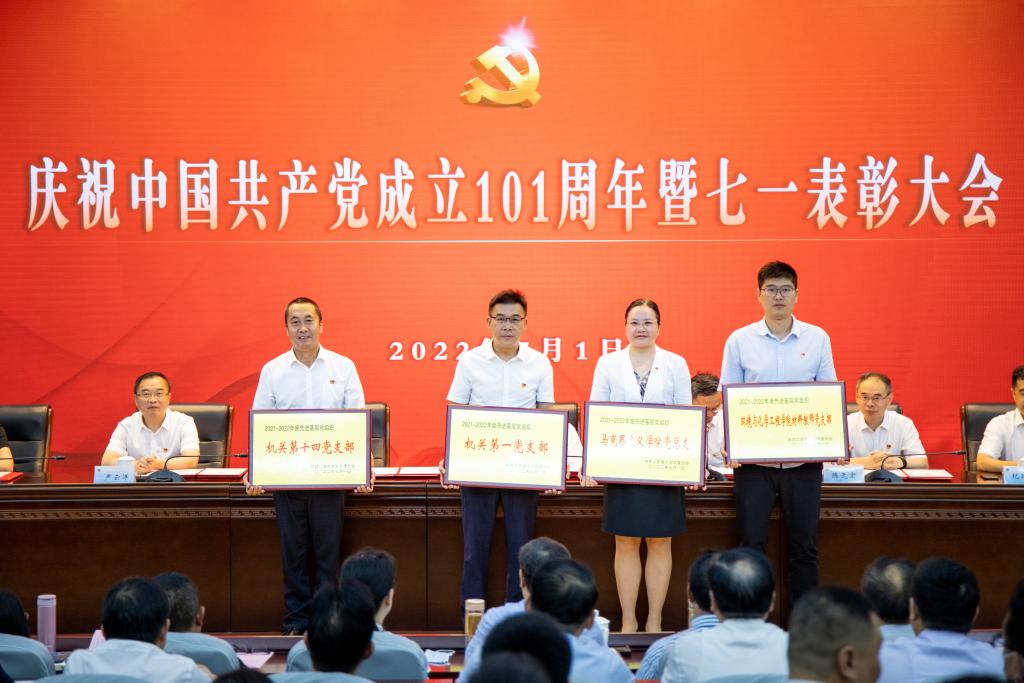 马克思主义学院党总支等4个基层党组织被授予“校先进基层党组织”称号,王楠等11位同志被授予“校优秀共产党员”称号,王栋、郑晓涛2位同志被授予“校优秀共产党员标兵”称号,王波等5位同志被授予“校优秀党务工作者”称号,王欢同志被授予“校优秀纪检委员”称号。机械工程学院党委等6个单位获党建工作创新奖。与会领导为受表彰的先进基层党组织和党员发放了奖牌和证书。