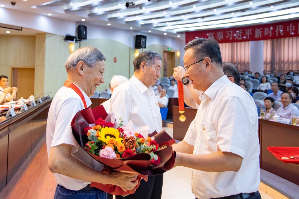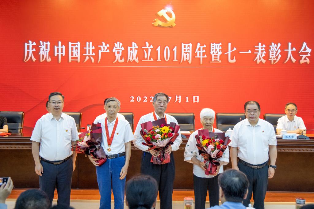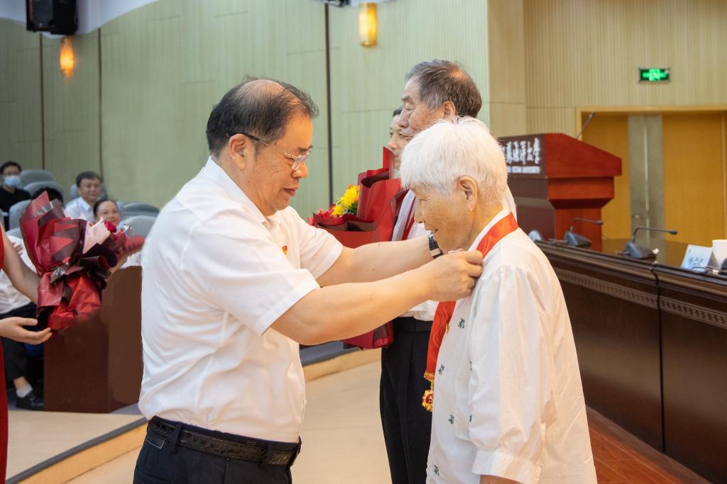 校党委书记王自力为老党员代表颁发“光荣在党50年”纪念奖章