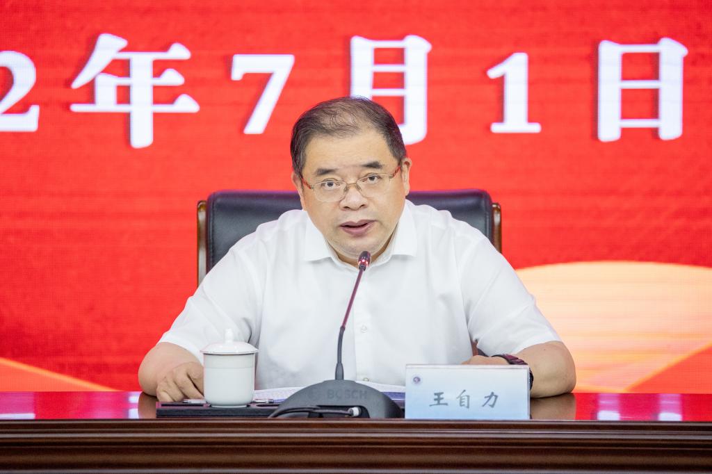 沧桑砥砺正道,历史昭示未来。王自力重温了中国共产党的光辉历程,回顾和总结了学校一年来党建工作取得的重要成绩,分析了学校事业发展面临的形势,对全体师生党员提出了殷切希望。他强调,面向未来,面对挑战,学校各级党组织和全体党员要弘扬伟大建党精神,从党的百年奋斗史中汲取智慧和力量,以伟大的历史主动精神、巨大的政治勇气、强烈的责任担当,全面推进学校各项事业高质量发展。