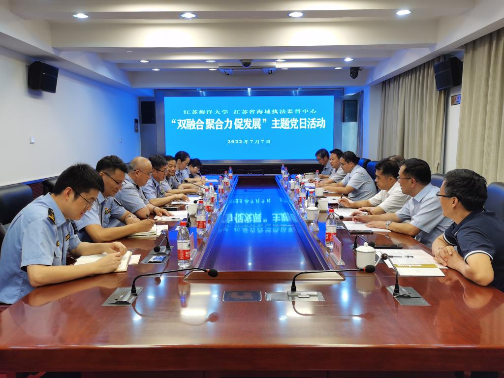 海洋科学与水产学院与江苏省海域执法监督中心近年来在海洋生态保护、海洋文化宣传等领域展开了一系列合作,本次主题党日活动中,双方围绕党建、业务领域相关工作展开座谈交流,就海洋科技研究、人才培养、海洋特色党建等方面开展深度合作达成一致意见,并分别签署党建共建协议、海洋生态监测站共建协议。